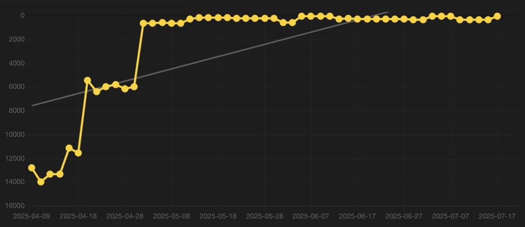 La siguiente gráfica ilustra claramente este crecimiento continuo, mostrando el aumento de sesiones activas en el juego entre abril y julio de 2025: